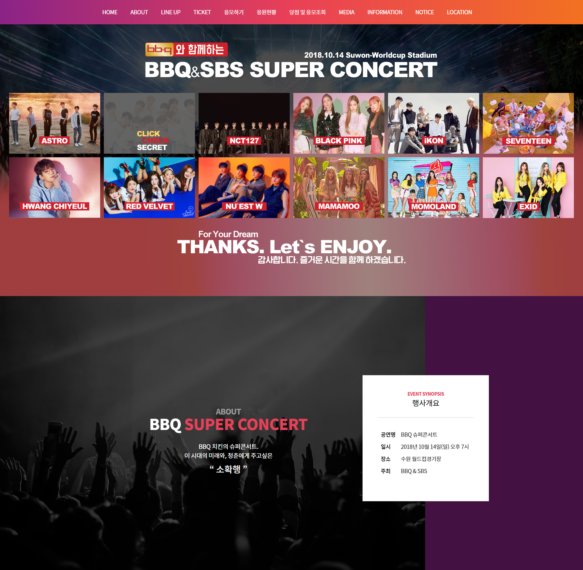 슈퍼콘서트 프로모션 사이트를 구축하였습니다.