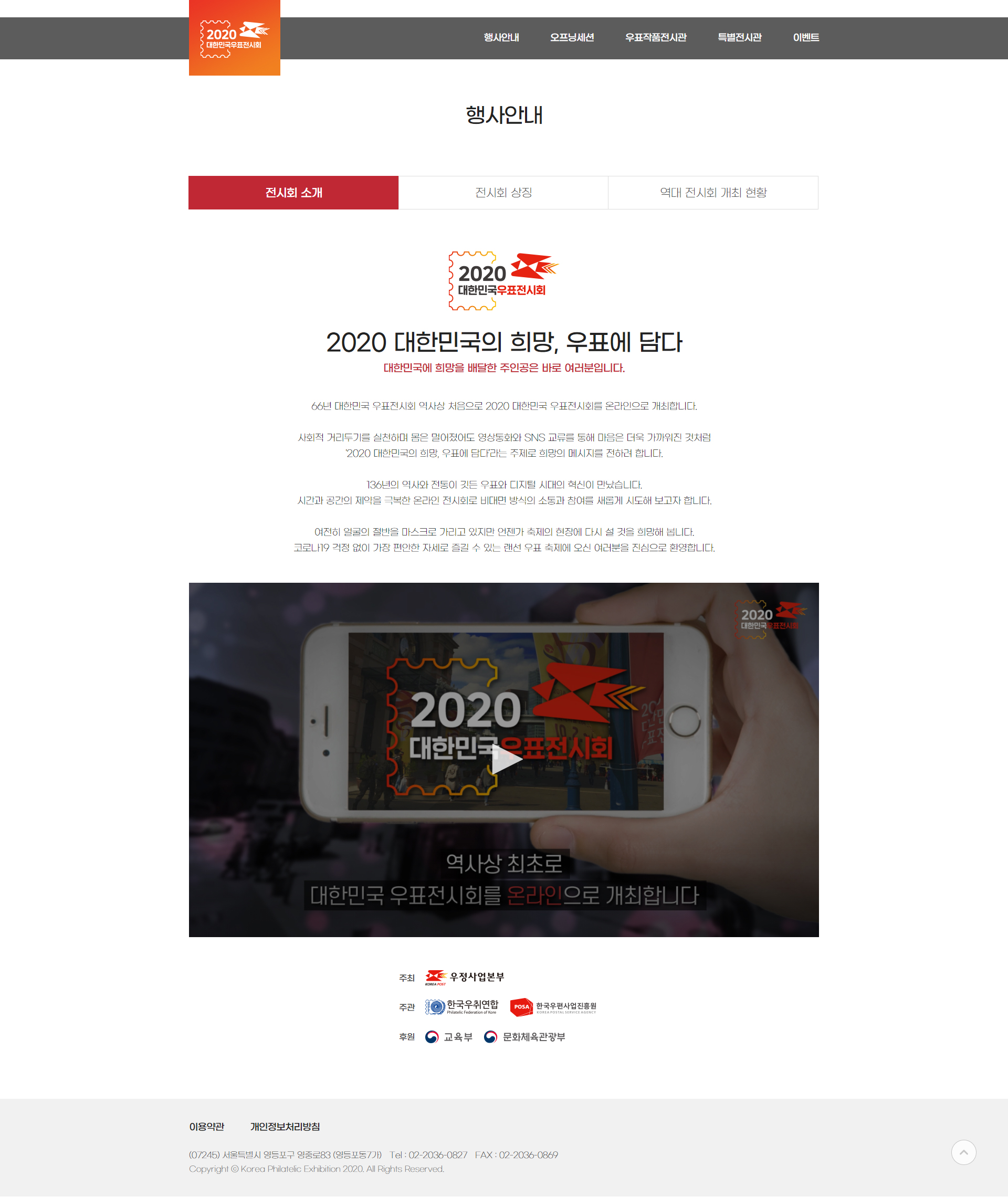 2020 대한민국 온라인 우표전시회홈페이지 제작